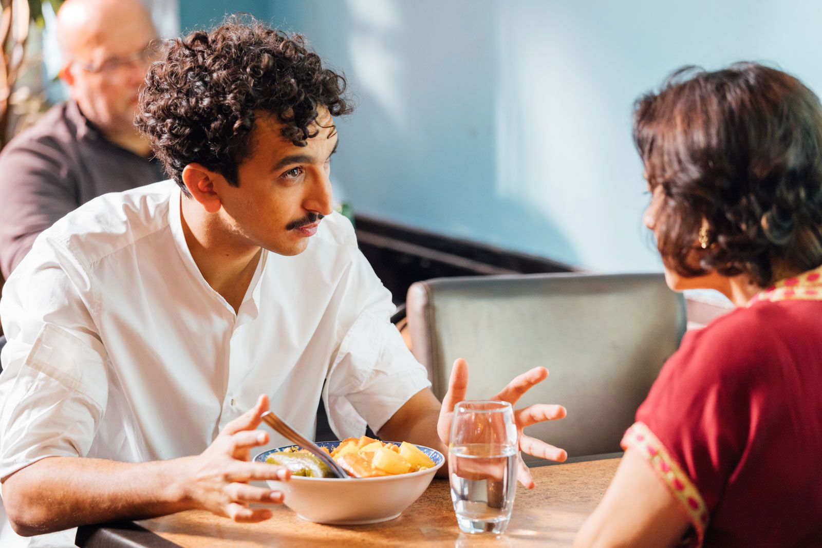 Du dĂ©sespoir de son personnage central, La petite cuisine de Mehdi puise son inspiration, le scĂ©nario mijotĂ© par Amine Adjina prenant appui sur les codes du vaudeville afin de corser une recette quelque peu dĂ©suète – puisque l’on devine aisĂ©ment l’aboutissement de cette mascarade Ă la sauce Ă©picĂ©e. Ainsi, en l’absence de rĂ©elle surprise quant Ă la conclusion du long-mĂ©trage, le cinĂ©aste s’amuse des quiproquos parsemant la carte de son menu pour que le spectateur en ait pour son argent. Et sur ce point, il est vrai que l’on se laisse aisĂ©ment divertir, en particulier grâce au capital sympathie se dĂ©gageant de ses personnages – bourrĂ©s de dĂ©fauts mais profondĂ©ment humains.